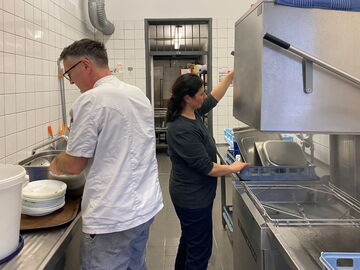 Thomas Mengeringhaus ist als zuverlässiger, hilfsbereiter und humorvoller Kollege im Haus der Kita Zak sehr geschätzt – und bei den Kindern als Koch mit dem Herz am rechten Fleck, der für (fast) jeden Quatsch zu haben ist. „Ich habe ganz schön viel bunte Knete im Kopf“ sagt er und lacht. Die Arbeit mit den Kindern kam recht spät in seiner beruflichen Karriere. 1985 kam er nach Berlin, lernte dort seine Frau kennen und gründete eine Familie. Nach einigen Jahren in der Berliner Gastronomie fand er den Einstieg in die Gemeinschaftsverpflegung und arbeitete einige Jahre in Seniorenhäusern, bevor er Küchenleiter im Bundespräsidialamt wurde. 2012 dann der Wechsel in die Küche in der Kita Zak. Hier arbeitet er zusammen mit seiner Kollegin Dilek Özcan, die Küchenhilfe bzw. Wirtschafterin in der Kita ist, und sorgt dafür, dass die Kita-Kinder jeden Tag abwechslungsreich essen können.