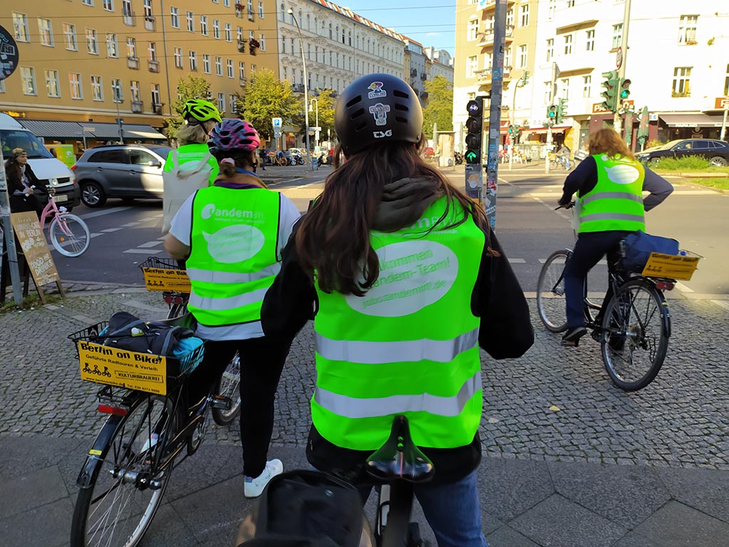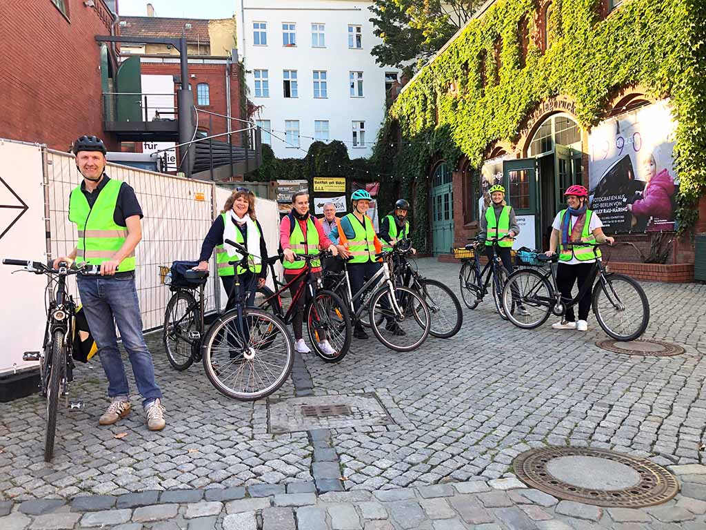 Start war jeweils die Kulturbrauerei, bei der auch Leihräder und Helme zur Verfügung gestellt wurden. Von da ging es Richtung Bornholmer Straße, dem Grenzübergang, der am 09.11.1989 zuerst geöffnet wurde, und dann weiter auf historischen Spuren entlang der ehemaligen Berliner Mauer. Rund dreieinhalb Stunden dauerten die erlebnisreichen Touren mit Picknick, bei denen die Teilnehmer*innen Berlin mit seiner langen Teilungsgeschichte näher kennen lernen konnten. „Die Radtouren haben allen große Freude bereitet. Nächstes Jahr planen wir wieder ein Event mit sportlichem Charakter“, sagt Annett Reusche.