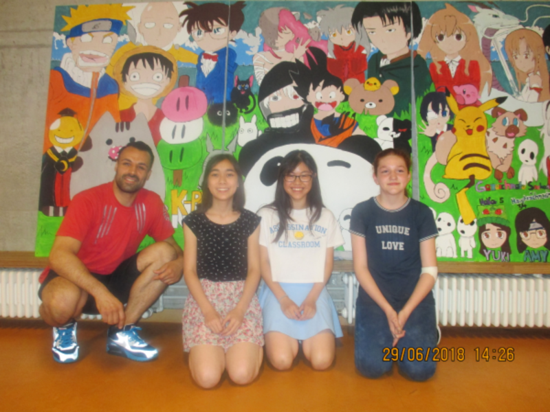 Die Sozialpädagogen des Ganztages der Peter-Ustinov-Schule (T. Bolle & A.Cornehl) realisierten mit dem AG-Leiter und Künstler Nelson Jamal die Umsetzung eines Kunstprojektes. Schüler*innen der Schule wollten mit Hilfe der Manga-AG in der Mensa ein neues Bild gestalten. Weil die Zeit in der AG für das große Vorhaben nicht ausreichte, wendeten sie sich an die beiden Sozialpädagogen. Im Rahmen der Projekttage wurden Zeit, Geld und Räume dafür vom Ganztag bereit gestellt. Damit konnte das Projekt fertig gestellt und zum Sommerfest erstmalig präsentiert werden.
